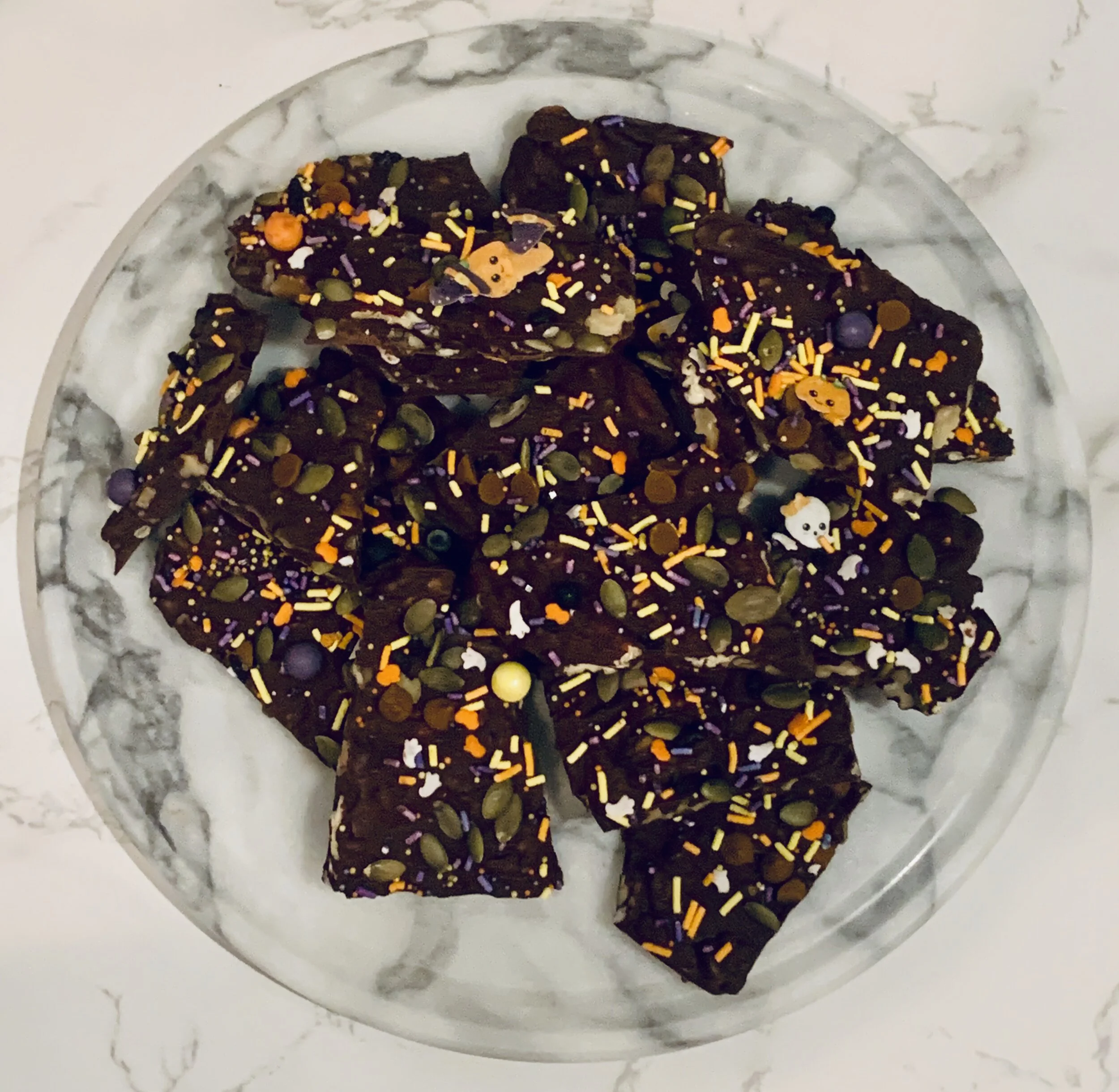 Cinnamon Chocolate Bark with Halloween Sprinkles